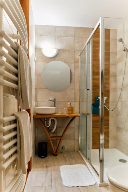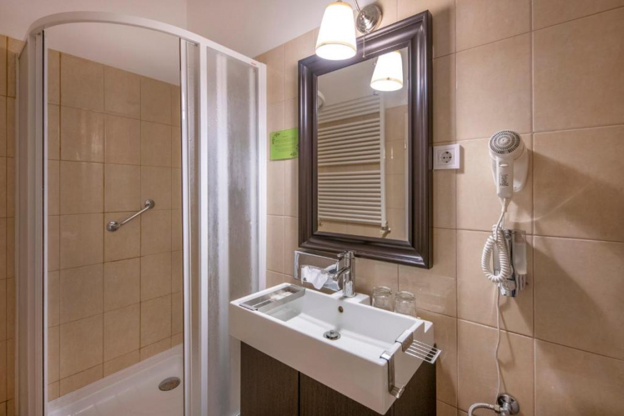 Comfortable Accommodation: Végvári Hotel Eger in Eger offers family rooms with private bathrooms. Each room includes air-conditioning, a bath, hairdryer, refrigerator, work desk, shower, interconnected rooms, TV, parquet floors, and a wardrobe.