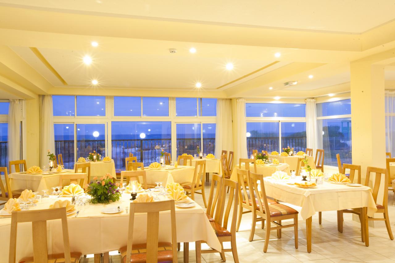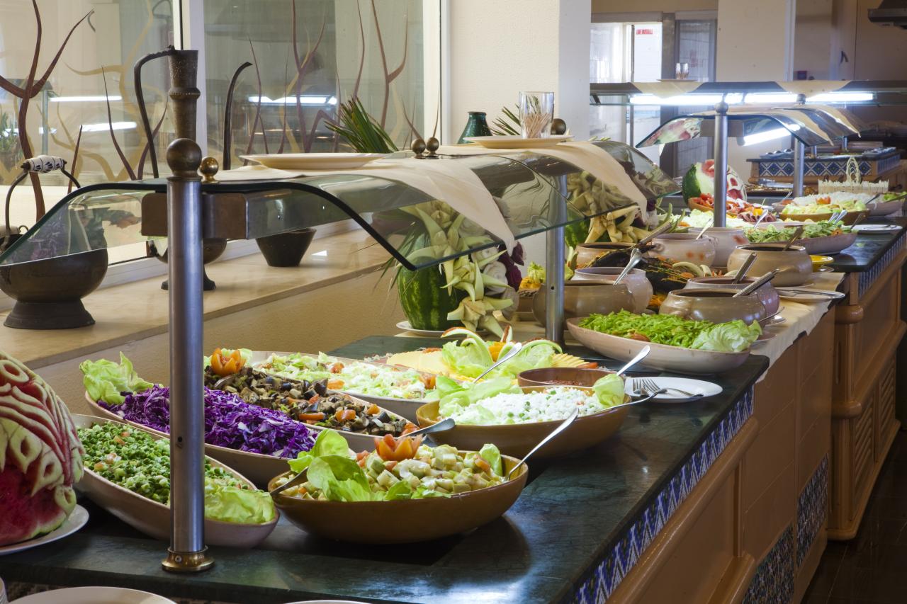 All inclusive ellátással foglalható, mely tartalmazza büféjellegű reggelit, késői reggelit, ebédet, vacsorát, éjszakai snacket és a helyi alkoholmentes és alkoholos italok fogyasztását. Napközben édességeket és snackételeket kínálnak. Előzetes foglalást követően a vendégek tartózkodásuk alatt egyszer ingyenesen vacsorázhatnak az a'la carte étteremben. A szállodában több bár és egy mós kávézó található. Térítés ellenében vízipipa, ital a diszkóban, capuccino, eszpresszó kávé, dobozos sör, üveges ásványvíz kérhető. Minden ital műanyag pohárban kerül felszolgálásra.