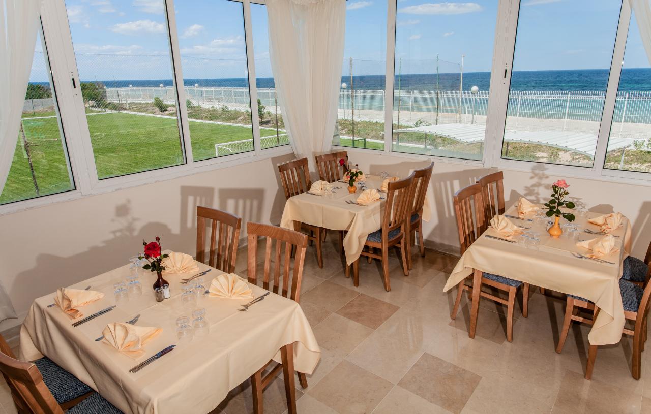 All inclusive ellátással foglalható, mely tartalmazza a büféjellegű reggelit, késői reggelit, ebédet, vacsorát, éjszakai snacet és a délutáni kávét, teát, süteményeket. Napközben a helyi alkoholos és alkoholmentes italok (ásványvíz, koktél, likőr, bor stb.) fogyasztása a kijelölt bárokban. Minden ital műanyag pohárban kerül felszolgálásra. A főépületben található a recepció, az étterem, valamint a bárok: snack-, lobbi-, medence melletti bár, valamint a pizzéria, és a mór kávézó (vízipipa térítés ellenében). A tengerparti bárban csak alkoholmentes italokat szolgálnak fel. Heti egy alkalommal előzetes bejelentkezéssel tunéziai vacsora fogyasztható az a’la carte étteremben. A palackozott vízért kb. 2 TND fizetendő.
